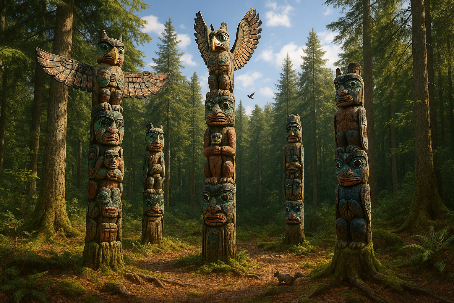 In the lush landscapes of the Pacific Northwest, where ancient forests echo the whispers of time, towering totem poles stand as